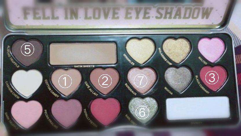 第五步:最后就是看似鬼畜的⑥浅浅的苍蝇绿,看着不怎样,但上色非常好看,涂在眼皮中间,很清新。