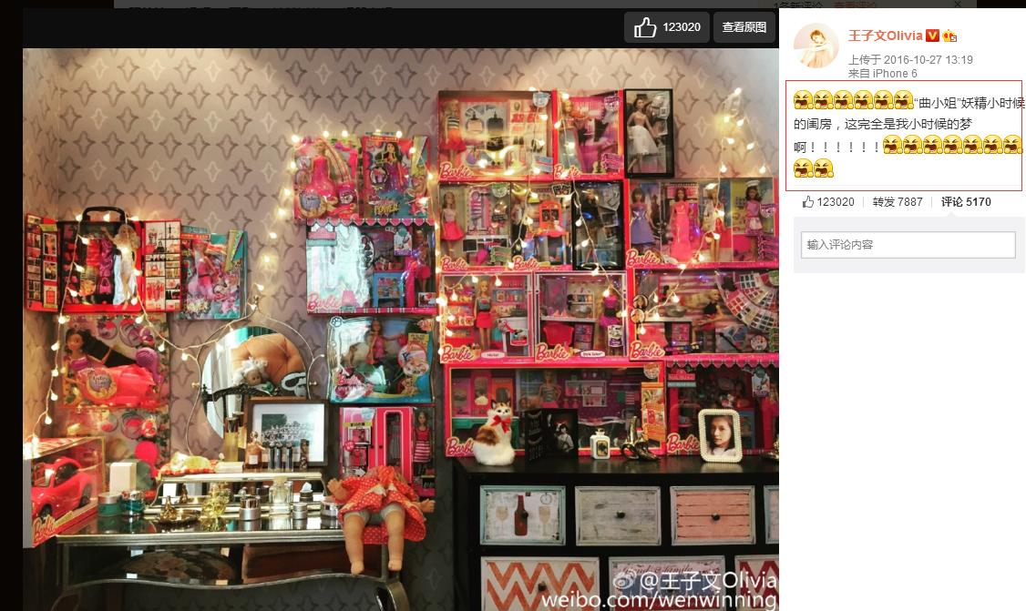 就像开拍前王子文自己在微博中说的:曲妖精在《欢乐颂2》中的化妆台根本是女孩们小时候的梦想啊!满满的化妆台和芭比娃娃,任谁看了都会少女心泛滥哒!