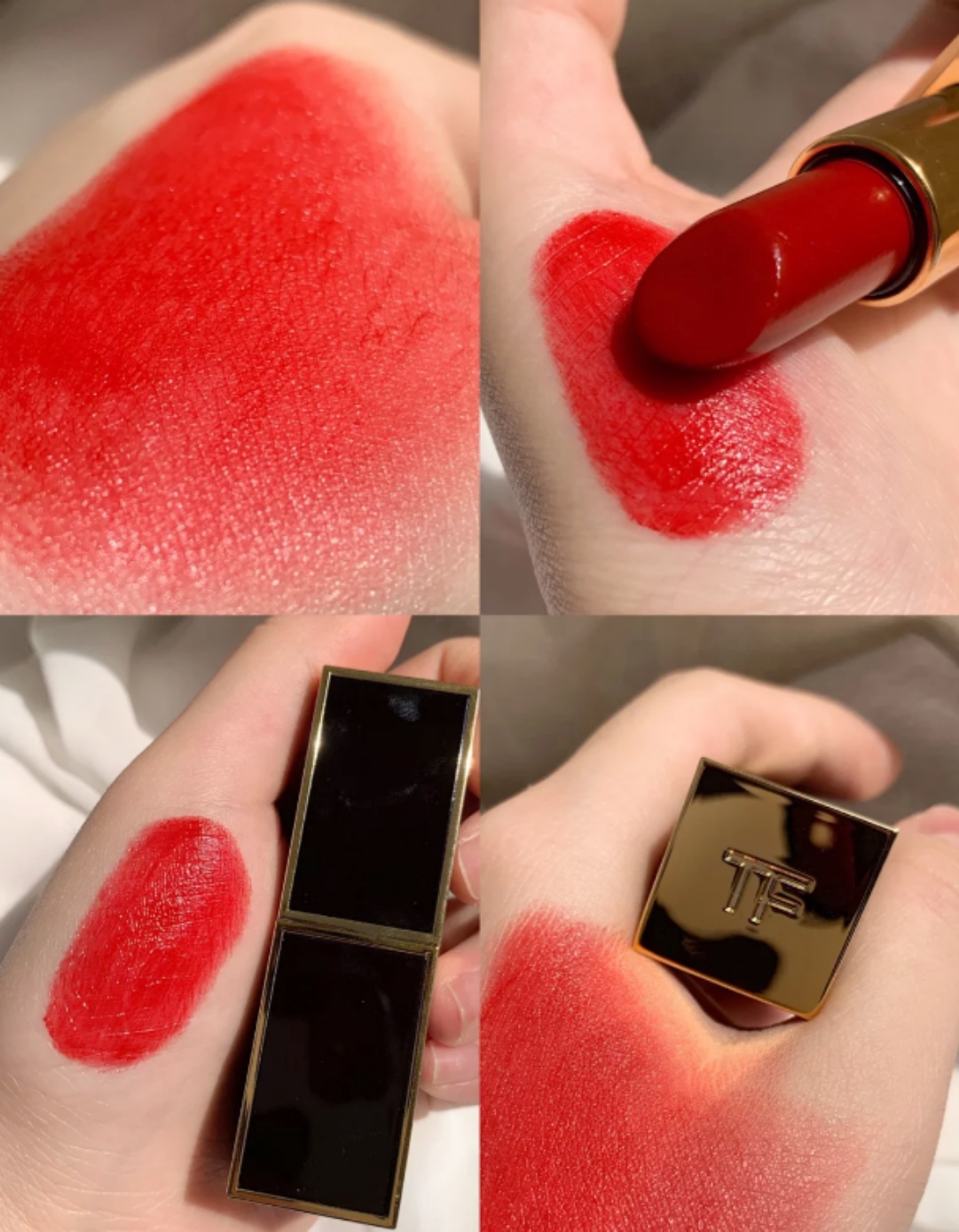 这一款算是烂番茄色号口红中的老网红了,虽然上新比较长时间了,但是一直都还是很受大家的欢迎。这款口红薄涂厚涂是两种不一样的感觉,薄涂有点水红色的感觉,特别的日常。厚涂则是红色带橘,妥妥的番茄色,非常的提亮肤色。而且这款色号非常的滋润,不容易显唇纹,即使唇部比较干,用了也超级滋润,特别丝滑的质地,加上直线条黑色镜面的外壳,非常高大上。不过美中不足之处就是外壳包包放久了会有点点掉漆。