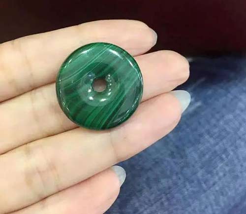 最难分辨的是合成孔雀石,各方面都与天然孔雀石极相似,无论是颜色,化学成分还有光泽度,甚至连天然孔雀石拥有的典型同心圆状、条带状构造,合成孔雀石也有。但天然孔雀石的绿色花纹深浅不一,或浓或淡,并不像合成孔雀一般没有灵活的渐变效果,一圈花纹都是同个色调,大多数时候可以辨认出来。