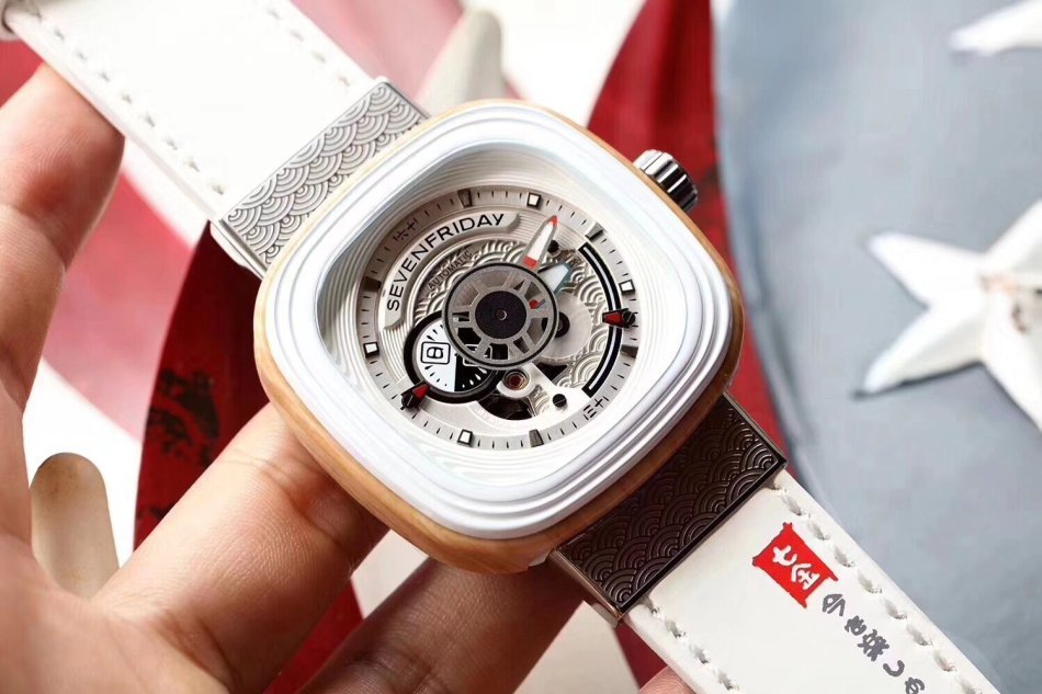 司机这期测评是七个星期五新款限量版型号P1B/03款,此款绝对是此品牌的人间精品,限量发售。这回的 SevenFriday P1B03包含了日系文化的双重性,在遵循传统的同时,还不断地探索新科技。一条连绵不断的波浪线代表着“富士山”,表盘中还印着用传统日文表现的浮雕图案,让“把握今天”的文字传达给大家年轻的品牌精神。