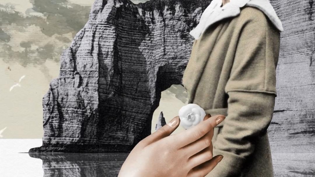 20世纪初,上流社会的男士流行将茶花佩戴于外套翻领处,彰显高雅、和谐与中性美。香奈儿女士借鉴了男士针织衫和西裤的设计,将茶花从男装的扣眼中解放出来。某天在埃特雷塔沙滩,突生灵感信手将茶花别在了布列塔尼外套的腰带上。