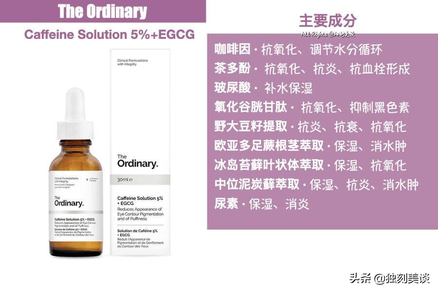 而对于血管型或眼部浮肿的人来说,「咖啡因」是一个一辈子都能使用的成分。