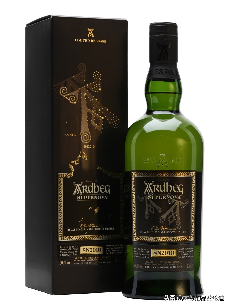 品鉴:完全的重泥煤,但入口时那种平衡像是行星宁静的运行,只是当入喉后,瞬间的爆发就在你口腔与咽喉之间炸开。在2010年版的《威士忌圣经》中,阿贝超级新星独自囊括了四个项目。吉姆·莫瑞将其形容为“阴郁的、撩人情绪的”,以及“一只大野兽。”