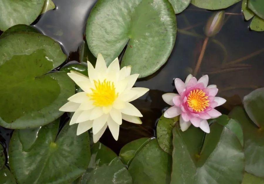 睡莲又叫子午莲,它是浮水类植物,叶子漂浮在水面,不同品种的睡莲于不同时刻绽放,飘在水面的花像过节放的莲花灯。